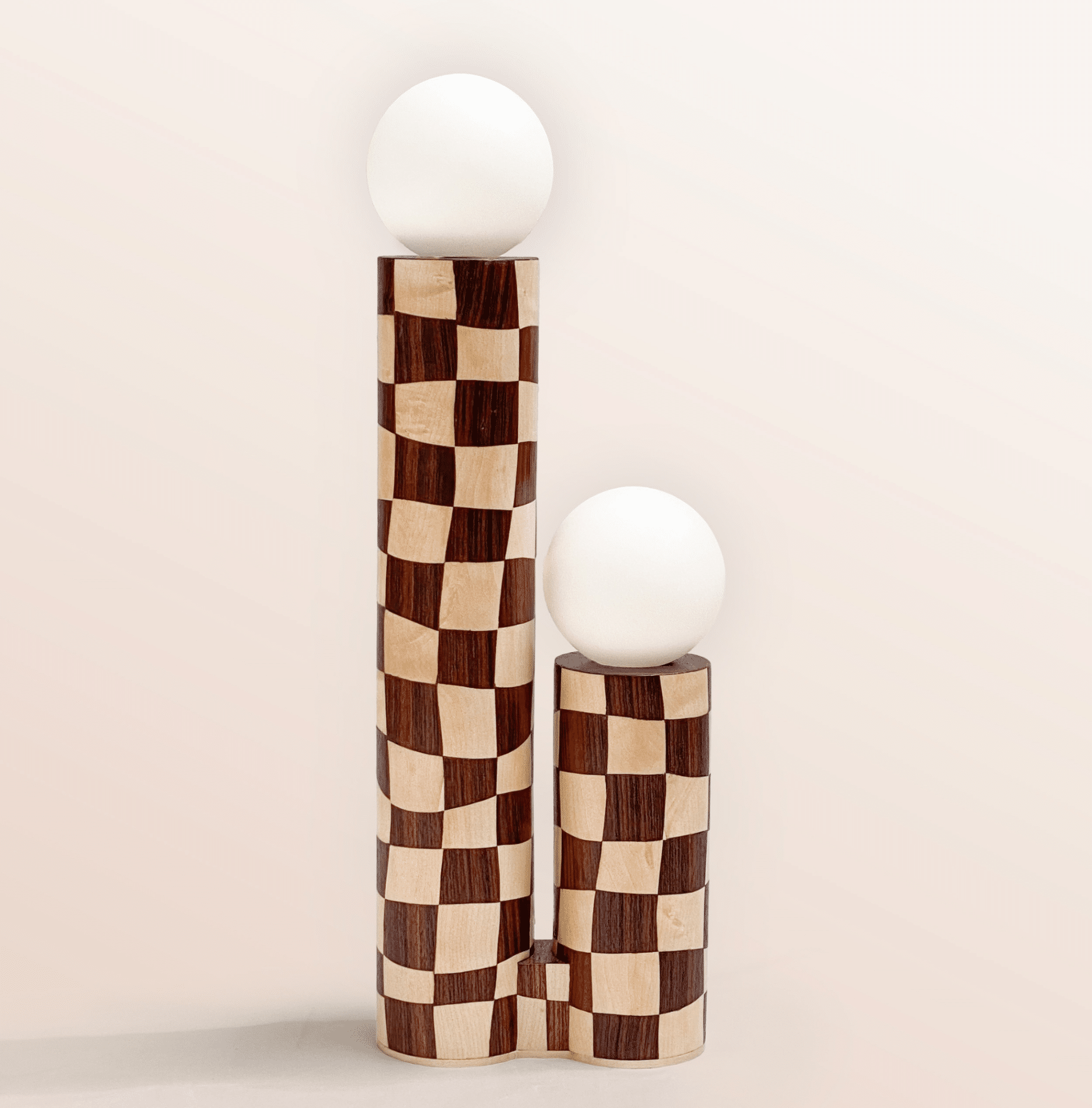 Réalisées en 35 à 60 heures de travail, ses œuvres sont des pièces uniques, dont les courbes à l’apparence ludique cachent une exigence technique et une rigueur constante. Seront présentées à l’édition Private Choice 2024 ses guéridons Tangoen positif et négatif, ou encore sa petite lampe damier Bisou.