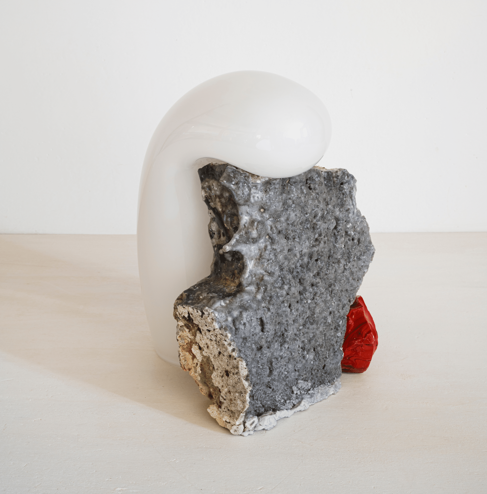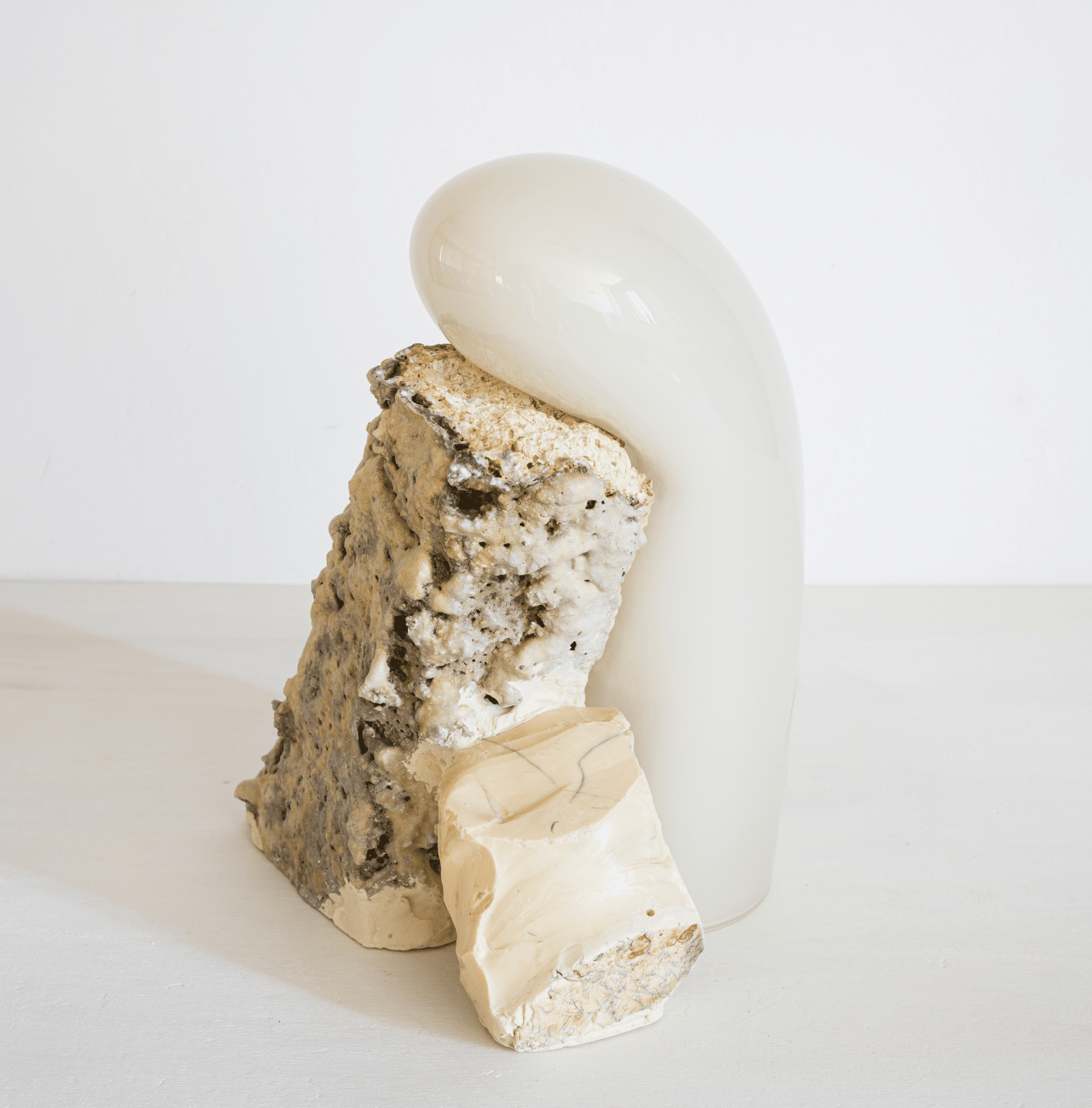 La quête de l’équilibre entre le verre et la pierre est perpétuelle dans le travail de Lætitia Jacquetton, qui parvient à marier dans ses sculptures deux matériaux aux propriétés opposées. La roche, dure et poreuse, est adoucie par la transparence et la fragilité du verre, épousant avec fluidité et sensualité ses parois minérales.