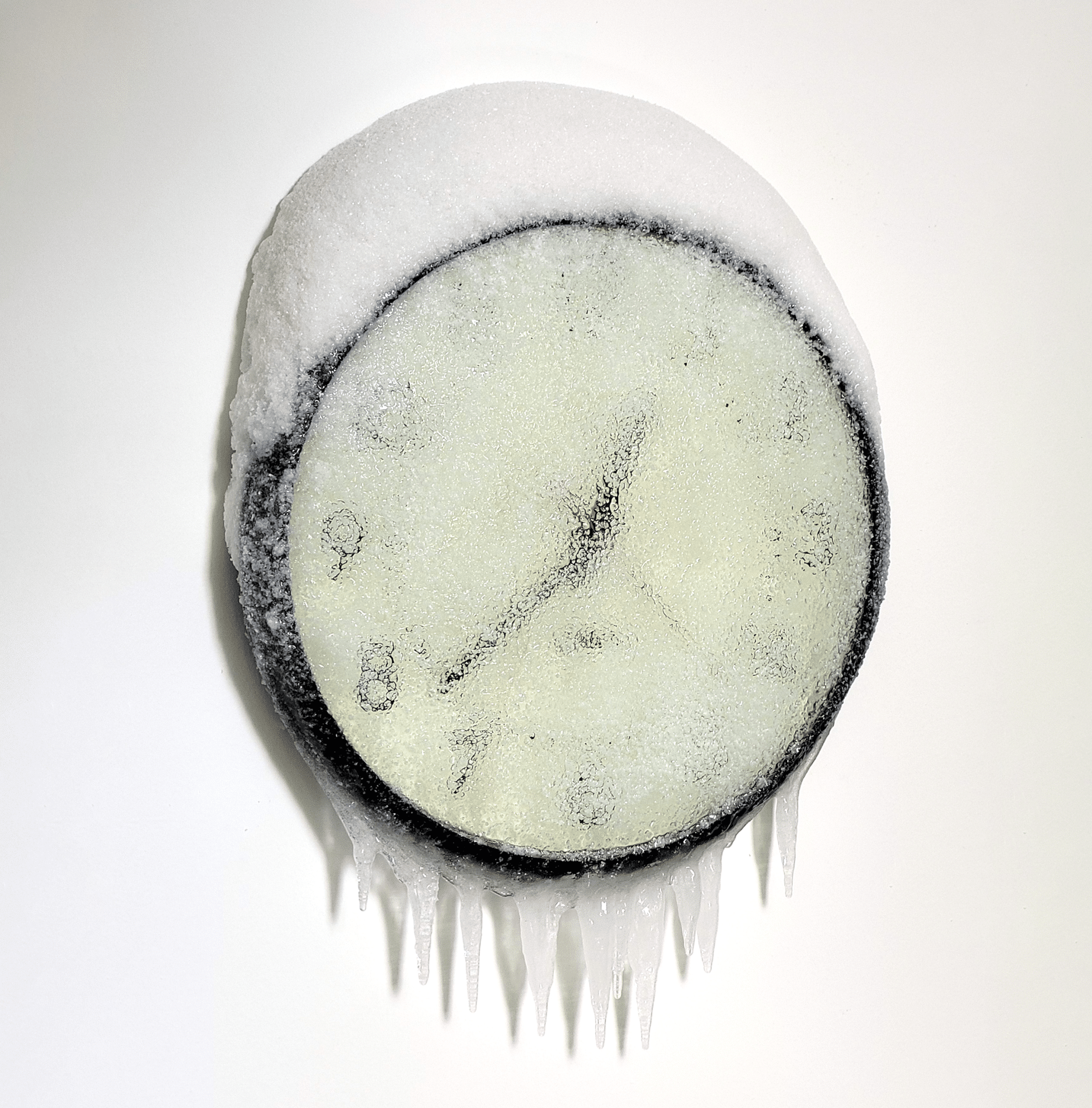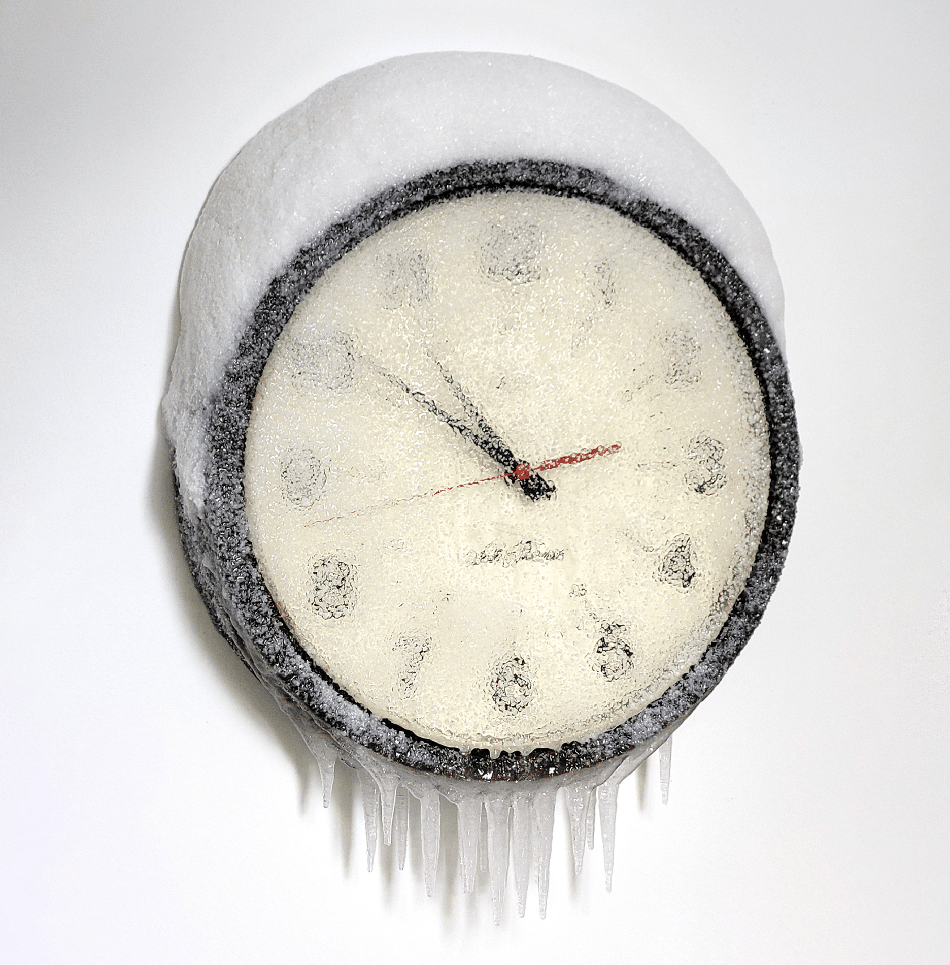 Résine et neige artificielle sur horloge murale