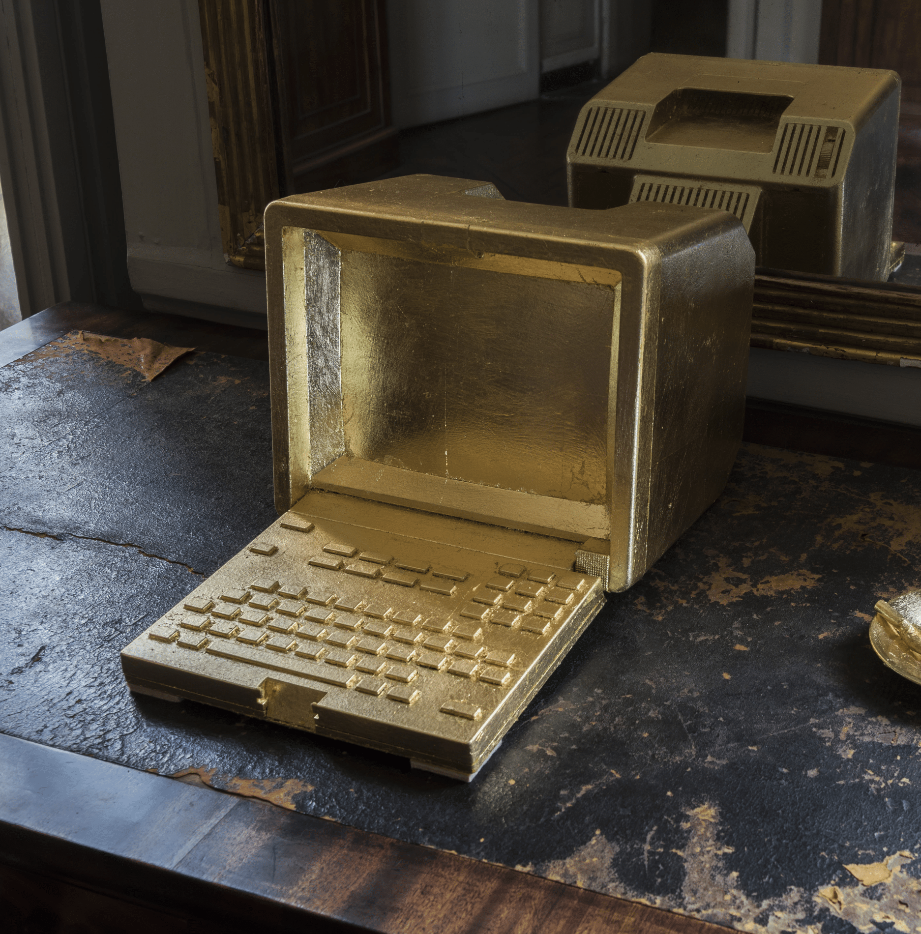 Mathias Kiss ne se limite à aucun médium, travaillant à la fois le bois, le marbre, le miroir, et s’adonnant autant à la peinture, la dorure, la sculpture, qu’au design. Il détourne et s’approprie les objets et les styles, joue avec les références et les perceptions des spectateurs pour proposer des œuvres à l’identité décalée.