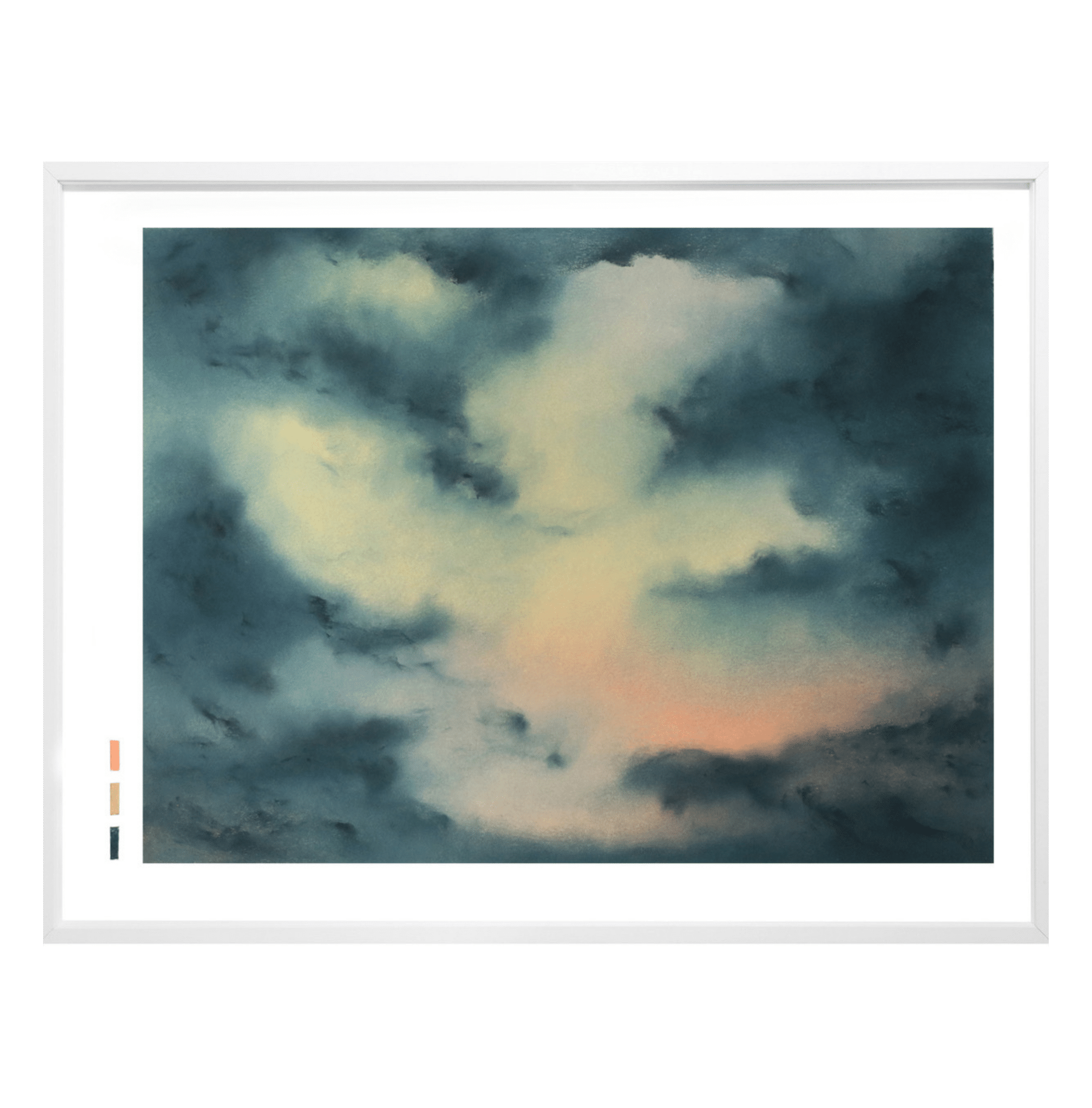 Les plans se superposent et s’enchaînent à travers les toiles, évoquant un langage cinématographique : le titre « Crossfade », traduit par « fondu enchaîné », est d’ailleurs emprunté au Septième Art. Intéressé par l’histoire de la peinture, Nicolas Dhervillers puise également son inspiration dans le Luminisme et l’Hudson River School. Ces deux mouvements artistiques américains du XIXe siècle ont d’ailleurs été influencés par l’avènement de la photographie au début de l’ère industrielle, bouleversant la perception de la nature et du paysage. Captivé par la valeur documentaire des toiles représentant les zones naturelles de l’Ouest américain, Nicolas Dhervillers explore les archives numériques des musées américains à la recherche d’images alliant qualités historiques, esthétiques et narratives. Choisissant des paysages maritimes, il crée des œuvres oniriques à l’atmosphère vaporeuse, quasi fantomatique. Tels des souvenirs qui s’estompent, ces témoignages évanescents glissent dans le domaine du rêve.