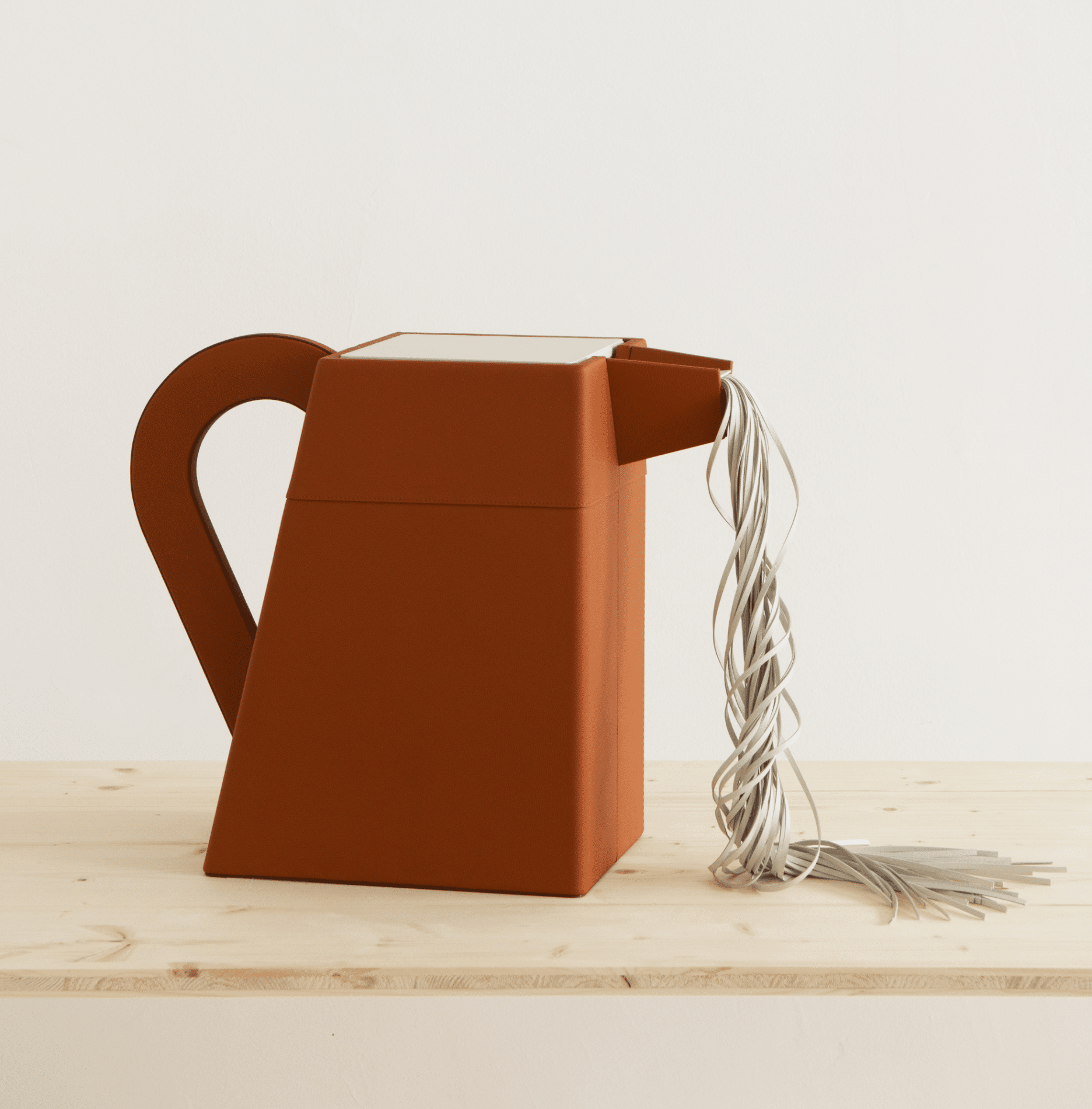 Recherchant sans cesse l’étonnement, sa démarche invite le ludique autant qu’elle valorise les savoir-faire. Accompagnée de son atelier éponyme, l’artiste réemploie le vocabulaire de la maroquinerie à travers ses pièces de design faites en cuir de veau coloré, issu de circuits courts.