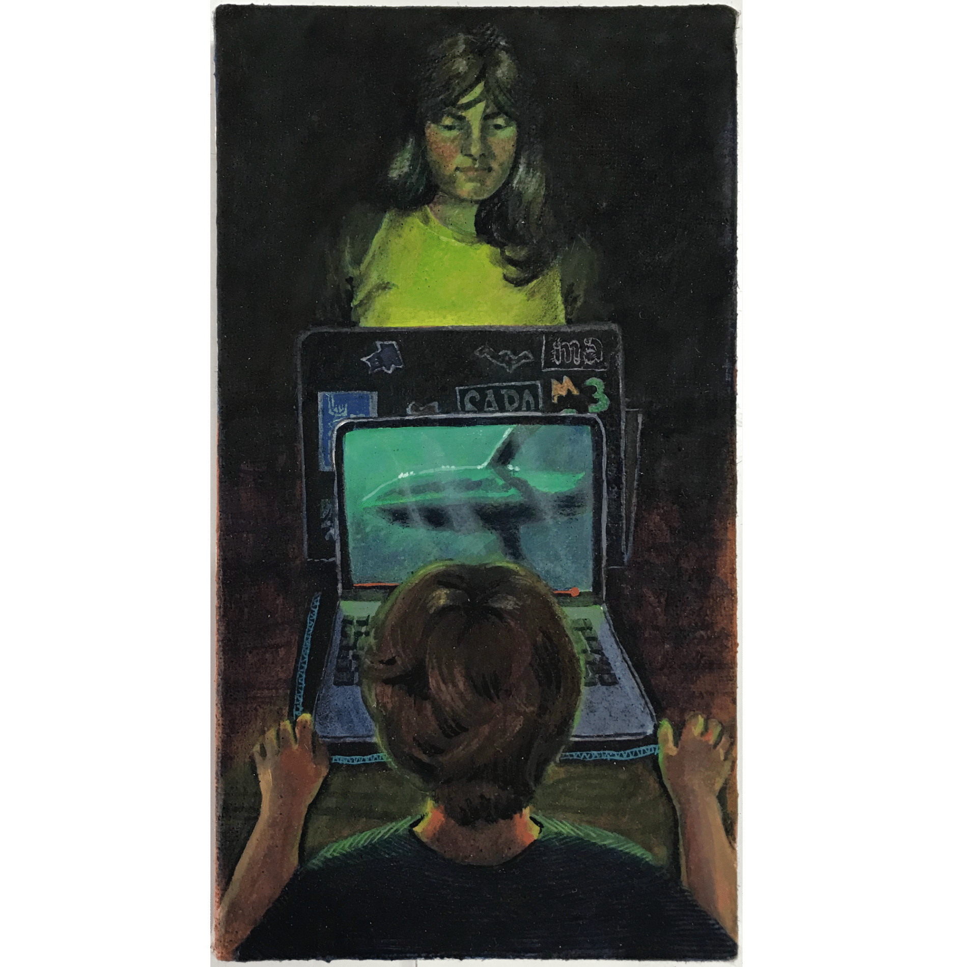 À travers ses petits formats, Louise Janet nous dévoile des parts de son histoire. Des personnages aux airs songeurs évoluent dans ses intérieurs familiers : loin de vouloir dresser le portrait de son entourage, l’artiste laisse cependant entrevoir une part de leur intériorité. La décoration d’une chambre, la manière désinvolte de laisser une couette défaite sur un lit, le « bordel organisé » qui jonche le sol… Chaque objet devient l’indice d’une personnalité et ouvre la voie à la narration.