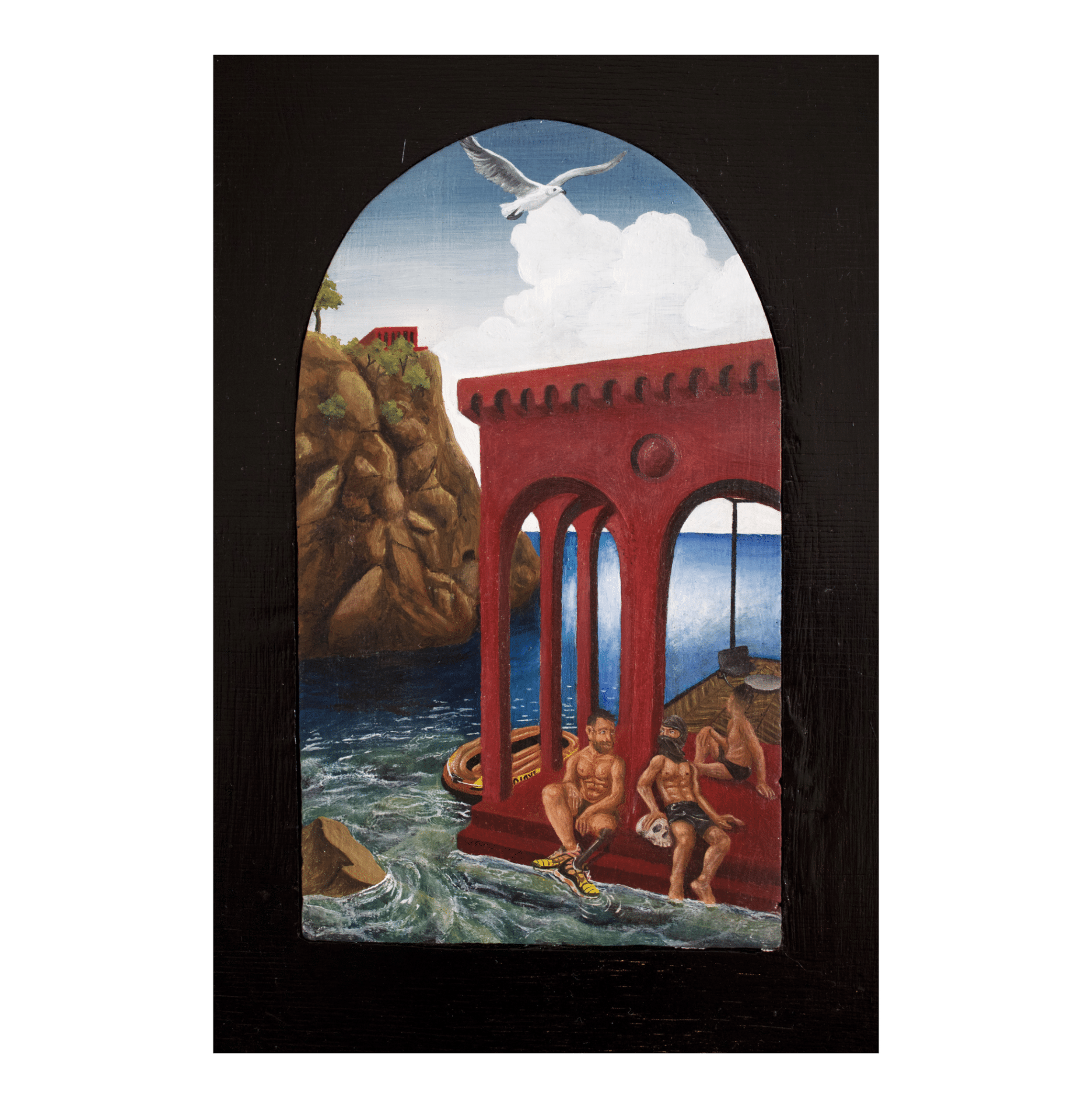 Sacha Cambier de Montravel a réalisé une série mettant à l’honneur la célèbre Villa Malaparte. Perchée à 32 mètres au-dessus de la mer sur le Capo Massullo, un rocher de l’île de Capri, l’artiste s’inspire des mythes et légendes qui ont forgé l’aura de cette demeure. Fondée par Curzio Malaparte, sa forme de boîte rouge pompéienne et ses lignes en font une icône de l’architecture moderne.