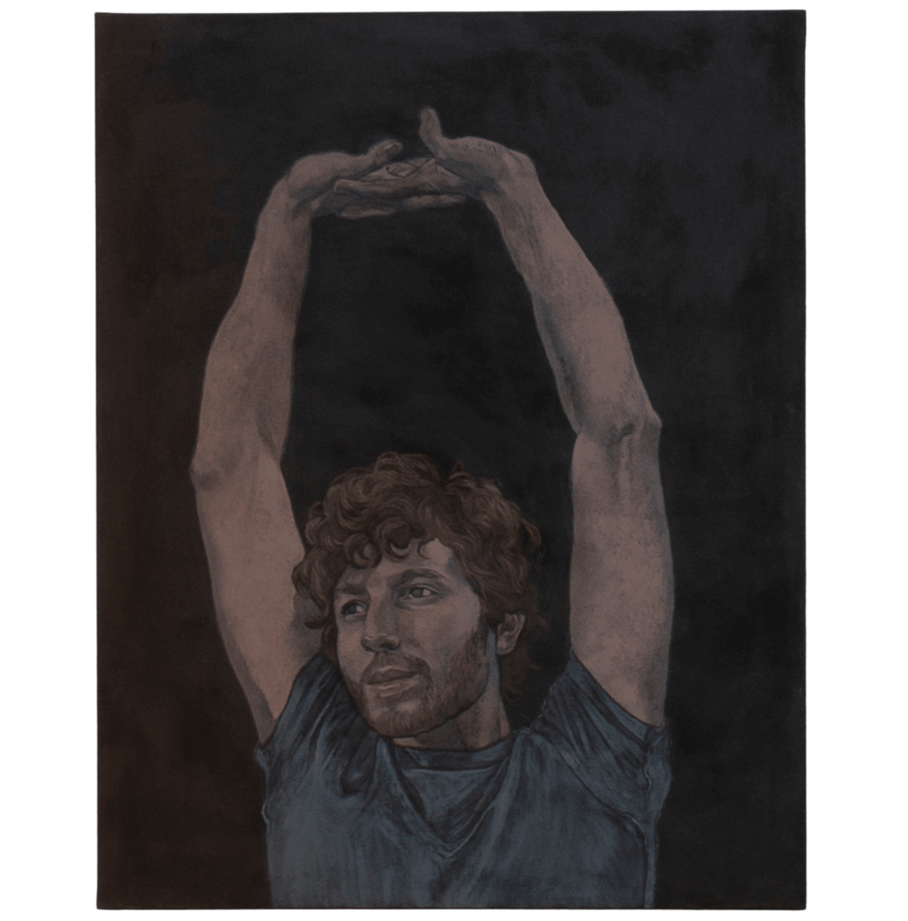 Sa peinture se comprend comme un travail sur la lumière, à l’instar de la figure qui apparaît sur la pellicule photographique grâce à l’exposition lumineuse, ou de l’acteur qui surgit sur scène sous l’éclat du projecteur. Un fond noir mat, presque néant, constitue la base à partir de laquelle elle développe sa représentation. Par cette technique, la lumière émane du sujet même, donnant vie et substance à la figure.