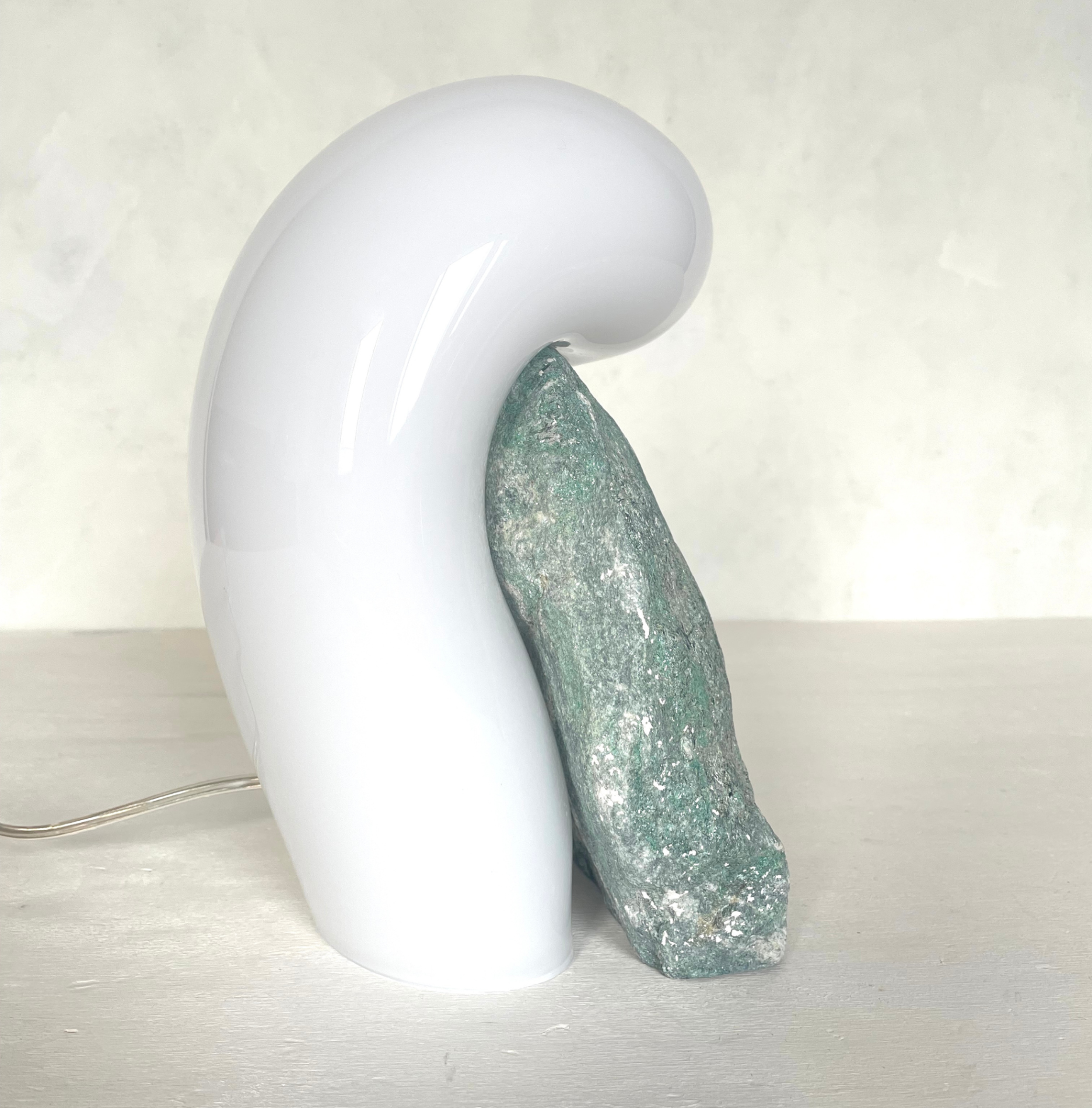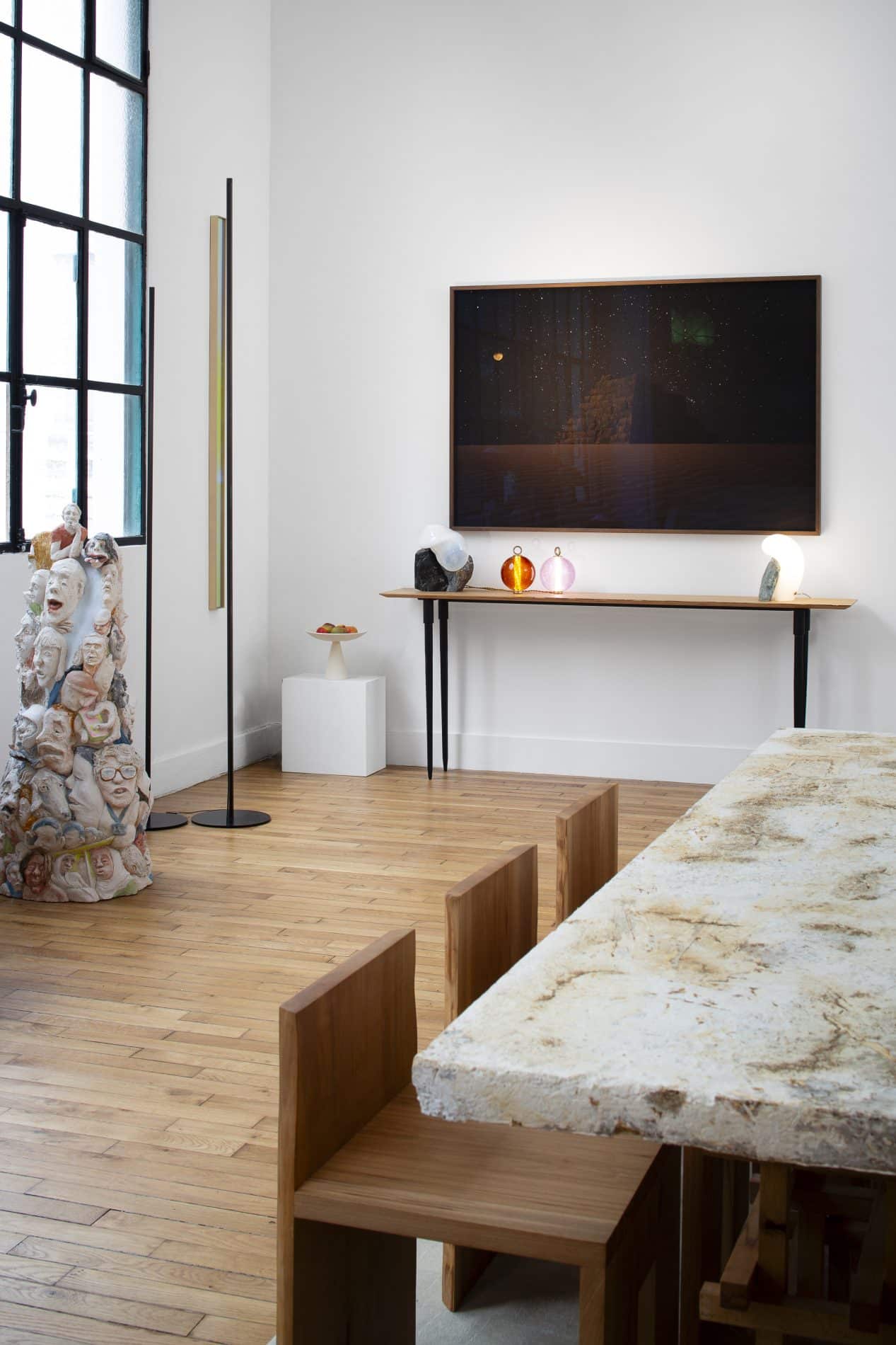 La quête de l’équilibre entre le verre et la pierre est perpétuelle dans le travail de Lætitia Jacquetton, qui parvient à marier dans ses sculptures deux matériaux aux propriétés opposées. La roche, dure et poreuse, est adoucie par la transparence et la fragilité du verre, épousant avec fluidité et sensualité ses parois minérales.