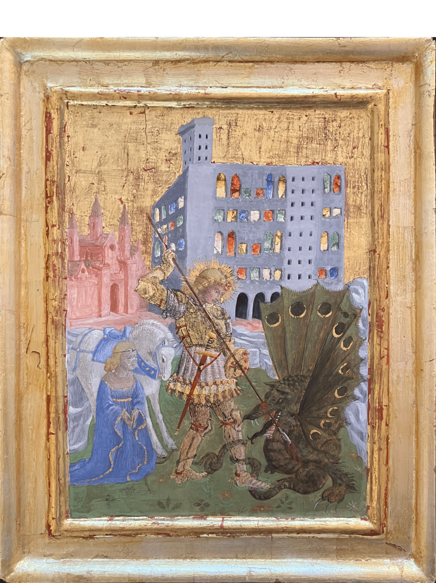 Huile et tempera sur bois, gomme-laque, caséine, or, argent