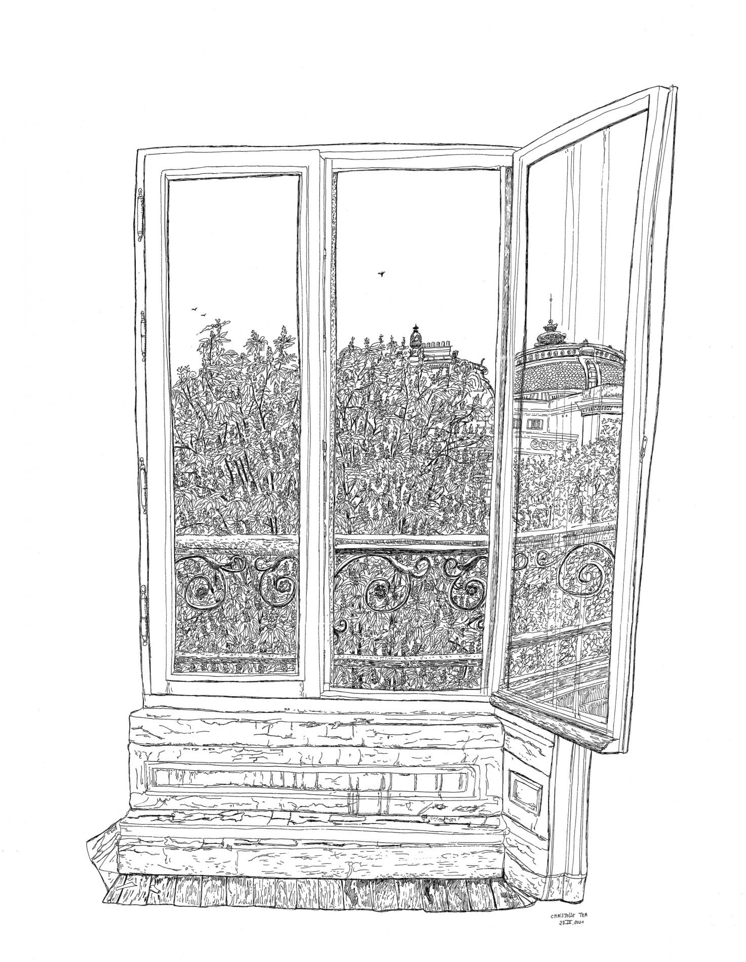 Vue de fenêtre sur le Palais de la Découverte, Paris, 28.IV.2021.